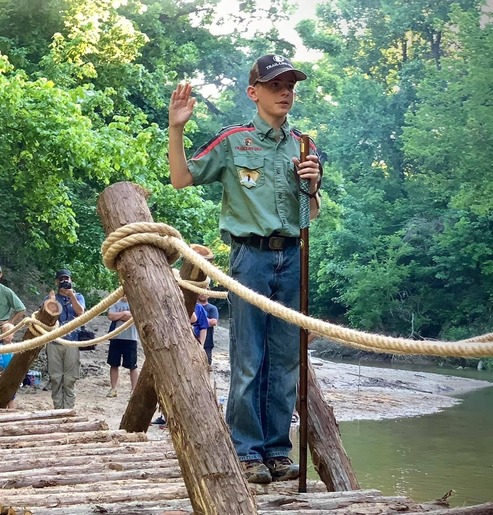 Troopmaster Clint calls each boy by name. With their Standard in hand, Trailmen say the Oath and are commissioned to cross over into manhood. Upon crossing, each boy is paired with an older boy as a visual reminder of Proverbs 27:17, ‘Iron sharpens iron, and one man sharpens another.”
